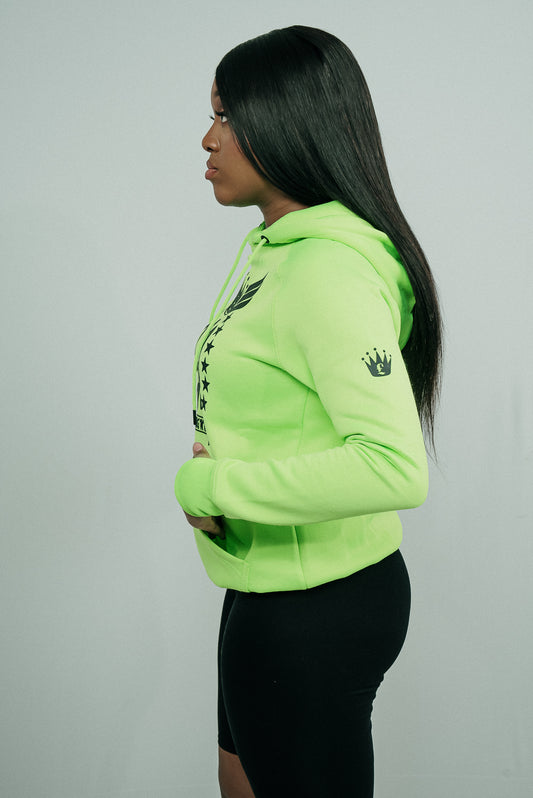 Neon Glow: Yung'n'Rich Lime Green Crest Hoodie – Street Luxe Series